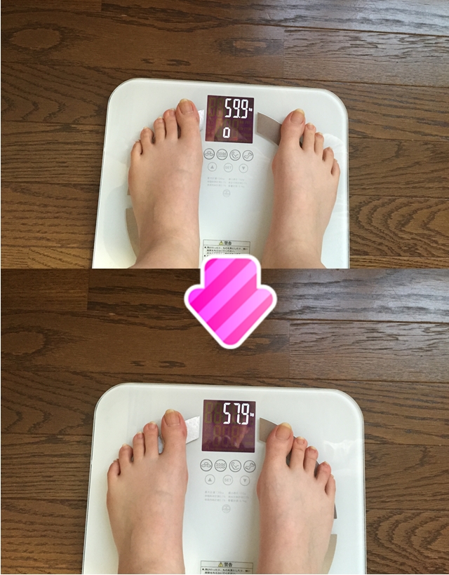 酵素ナースが実際に感じることができたダイエットの結果としては飲む前は59.9kgだったのが1本飲みきった24日目の時点で57.9kgとちょうど2kg痩せることができました!その後もリバウンドすることなく、数か月飲み続けると平均で1か月あたり1.8kgずつ痩せて行きました。