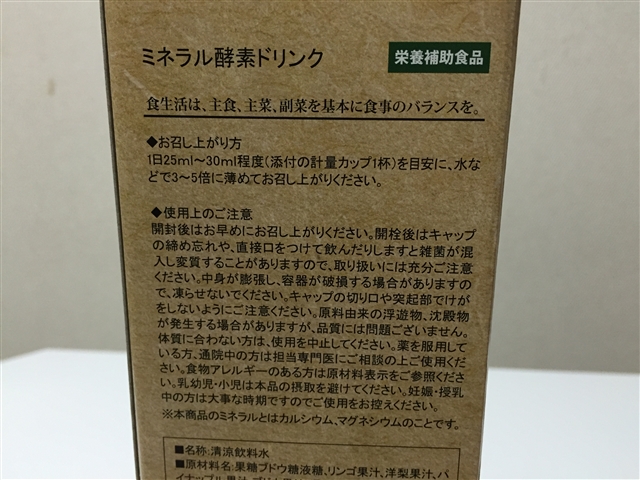 ミネラル酵素ドリンクのビンはこのような感じです。