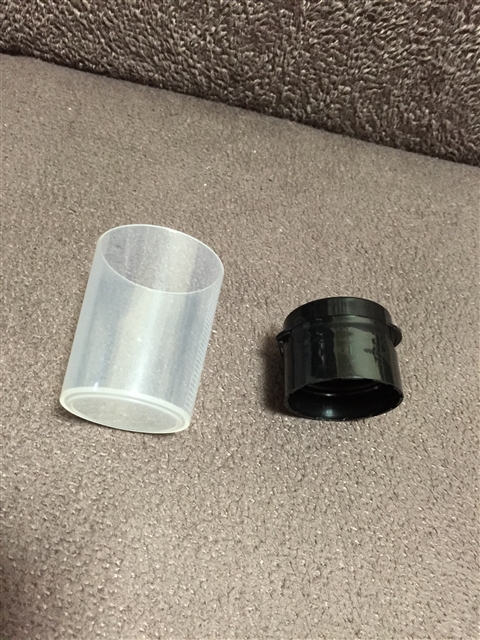 ドリンクの他には、液垂れがして瓶がベトベトになるのを防ぐ付け替え用ボトルキャップと、30mlをしっかり測れる計量カップがついています。